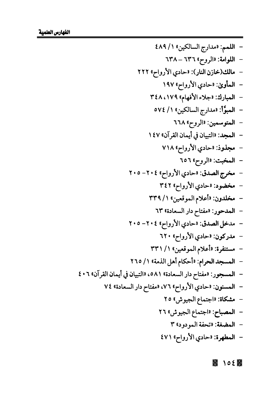 - المسنون: «حادي الأرواح» ٧٦، «مفتاح دار السعادة» ٧٤