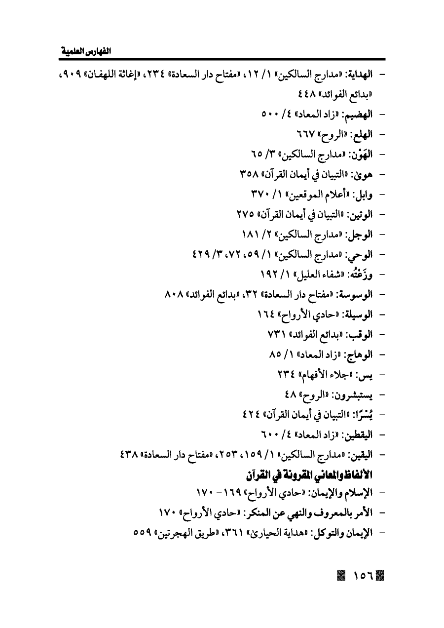 - الإيمان والتوكل: «هداية الحيارى» ٣٦١، «طريق الهجرتين» ٥٥٩