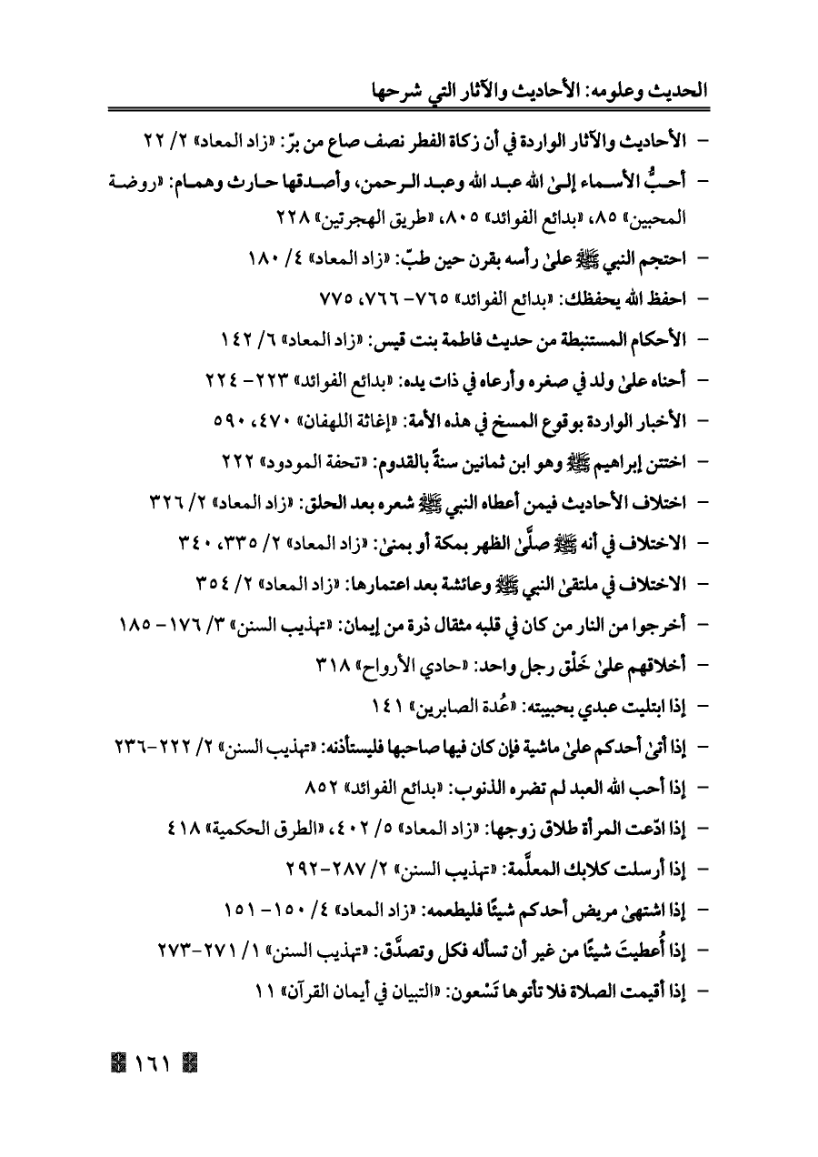 - الأحكام المستنبطة من حديث فاطمة بنت قيس: «زاد المعاد» ٦/ ١٤٢