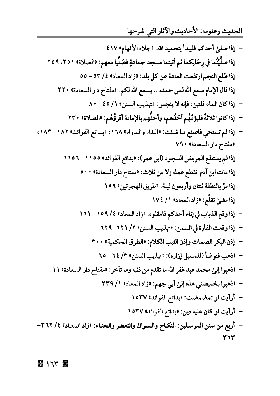- إذا صلى أحدكم فليبدأ بتحميد الله: «جلاء الأفهام» ٤١٧