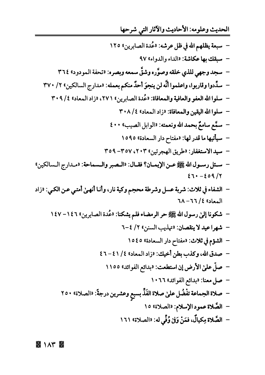 - سبعة يظلهم الله في ظل عرشه: «عُدة الصابرين» ١٢٥