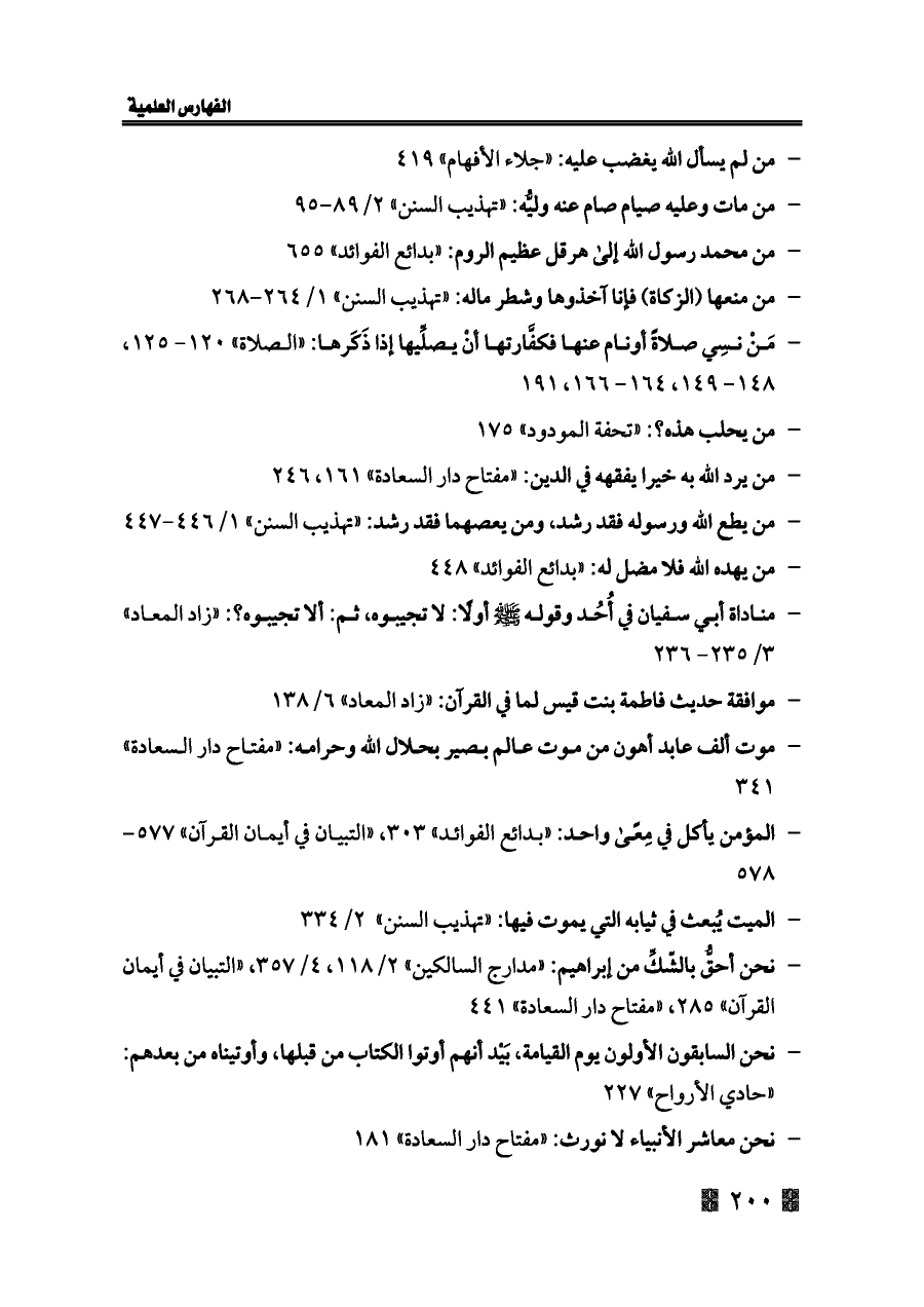 - نحن معاشر الأنبياء لا نورث: «مفتاح دار السعادة» ١٨١