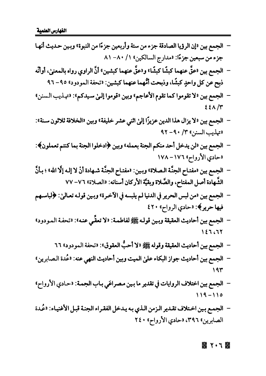 - الجمع بين اختلاف تقدير الزمن الذي به يدخل الفقراء الجنة قبل الأغنياء: «عُدة الصابرين» ٣٩٦، «حادي الأرواح» ٢٤٠