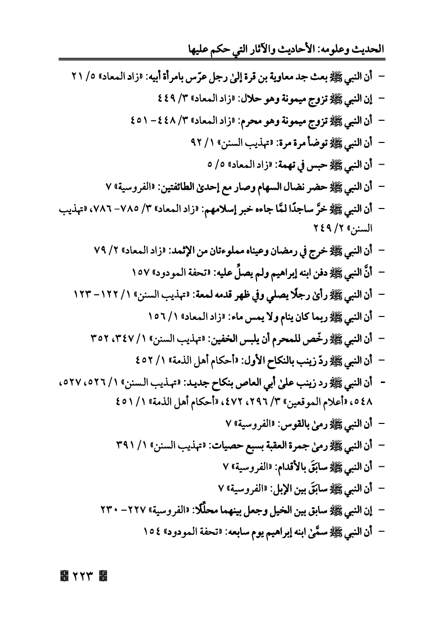 - أن النبي - صلى الله عليه وسلم - رمى جمرة العقبة بسبع حصيات: «تهذيب السنن» ١/ ٣٩١