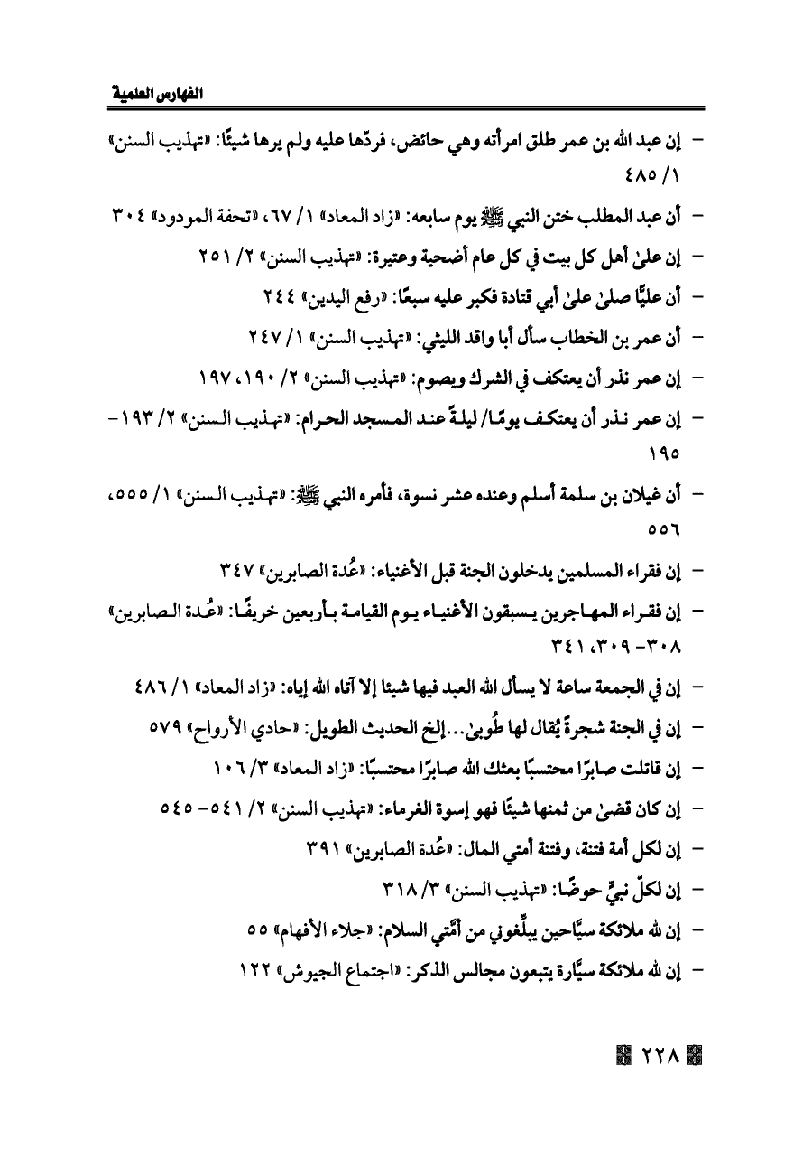 - أن عبد المطلب ختن النبي - صلى الله عليه وسلم - يوم سابعه: «زاد المعاد» ١/ ٦٧، «تحفة المودود» ٣٠٤