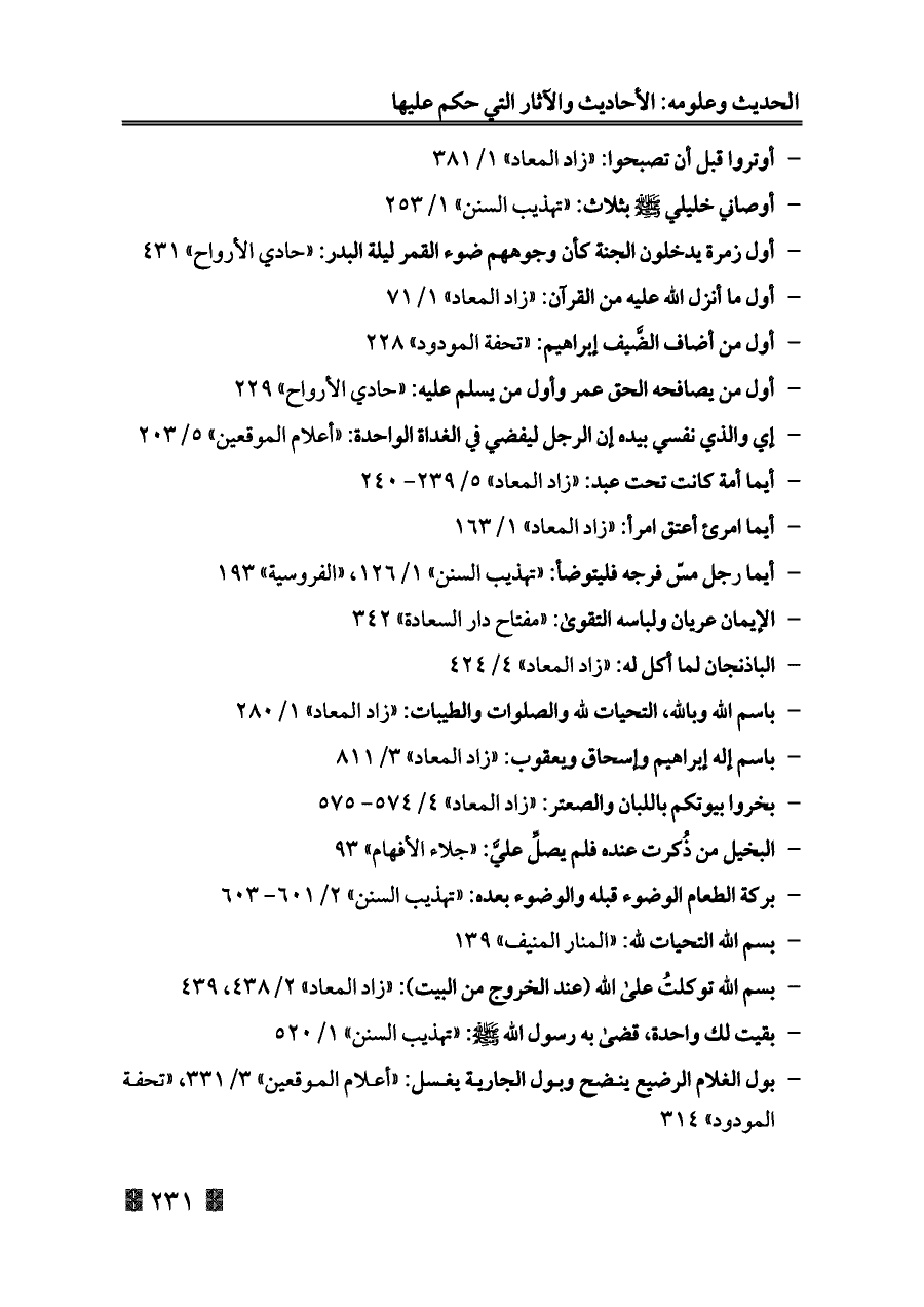 - أوتروا قبل أن تصبحوا: «زاد المعاد» ١/ ٣٨١