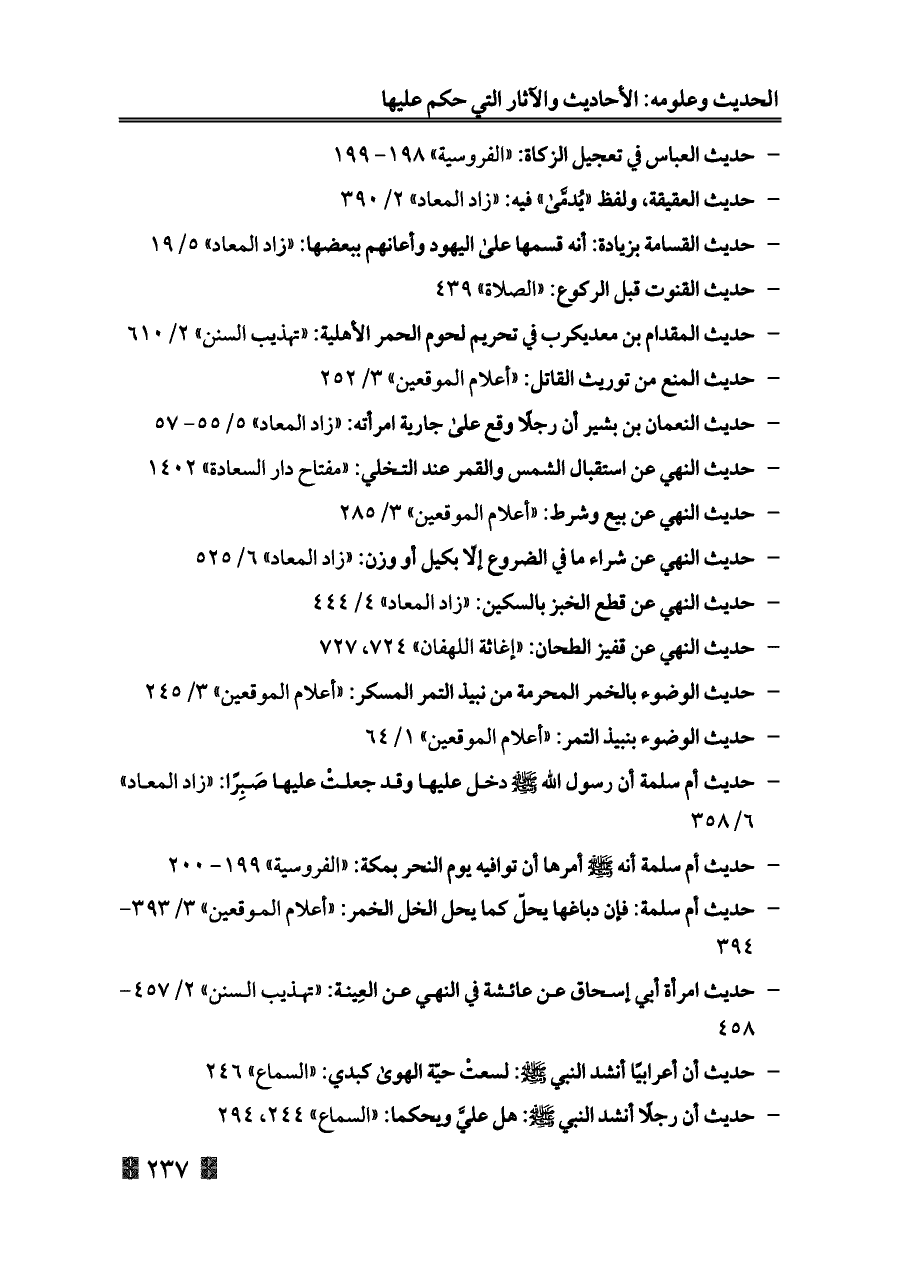- حديث النهي عن بيع وشرط: «أعلام الموقعين» ٣/ ٢٨٥