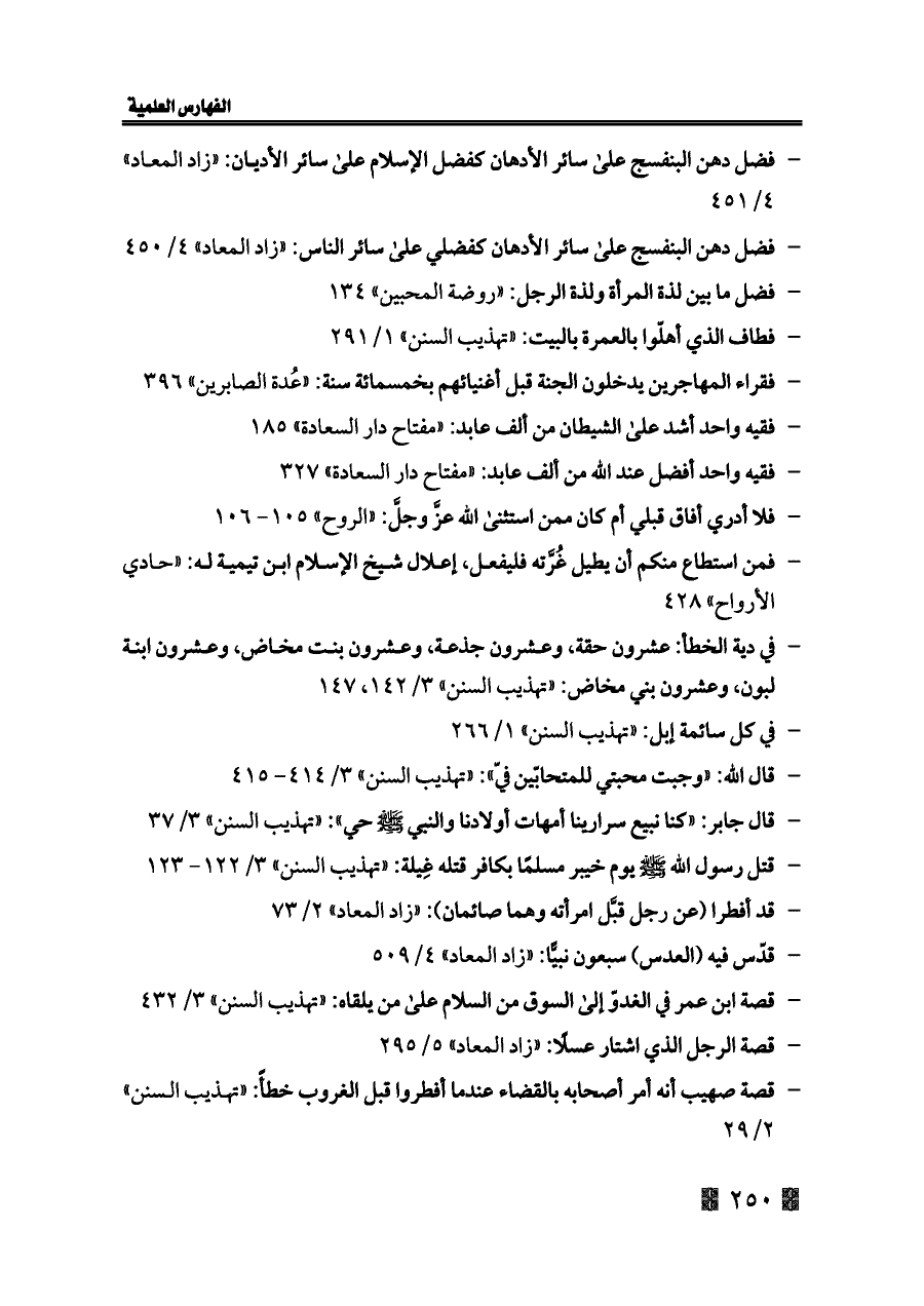 - فضل دهن البنفسج على سائر الأدهان كفضل الإسلام على سائر الأديان: «زاد المعاد» ٤/ ٤٥١