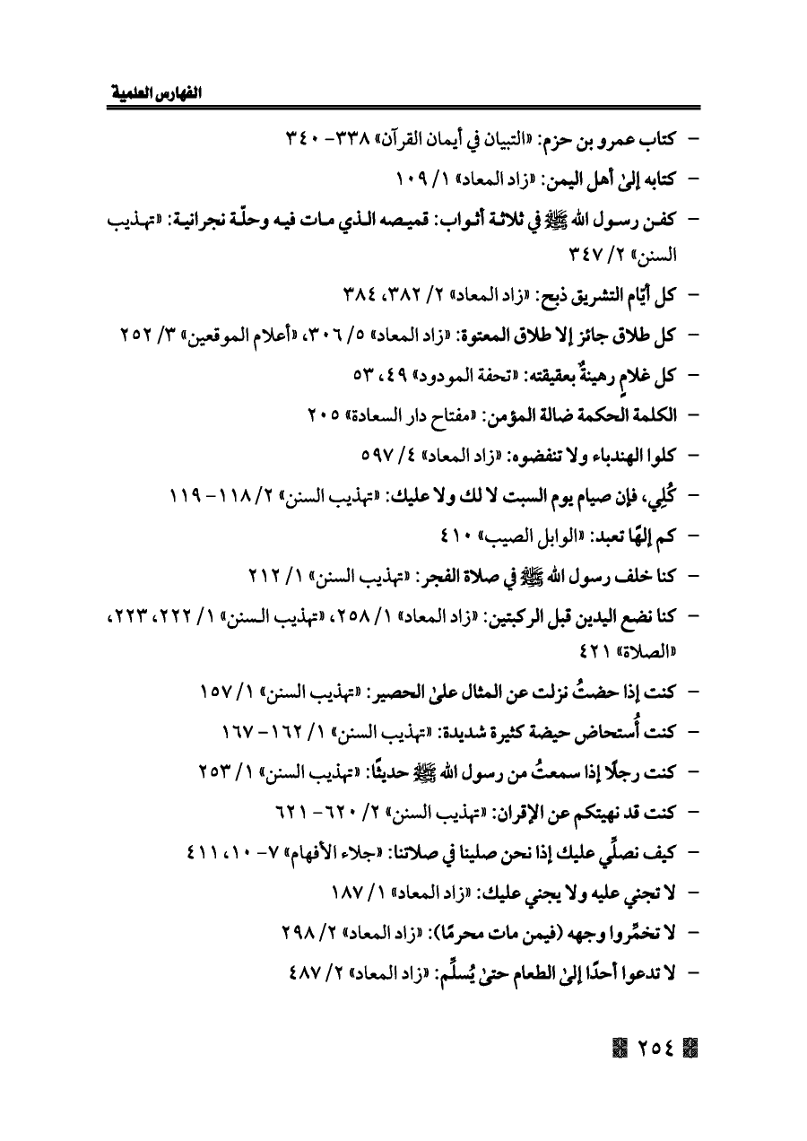 - لا تخمِّروا وجهه (فيمن مات محرمًا): «زاد المعاد» ٢/ ٢٩٨