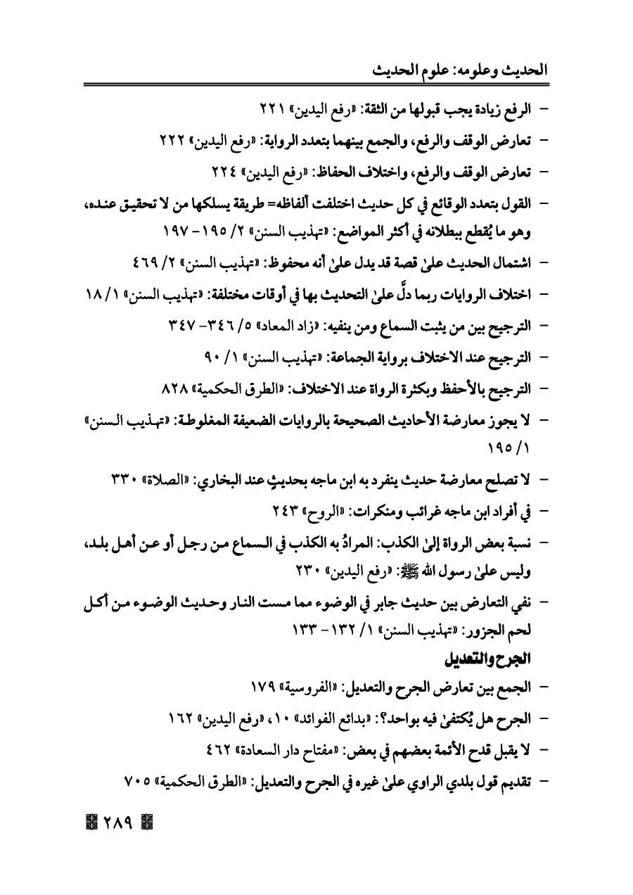 - تعارض الوقف والرفع، والجمع بينهما بتعدد الرواية: «رفع اليدين» ٢٢٢
