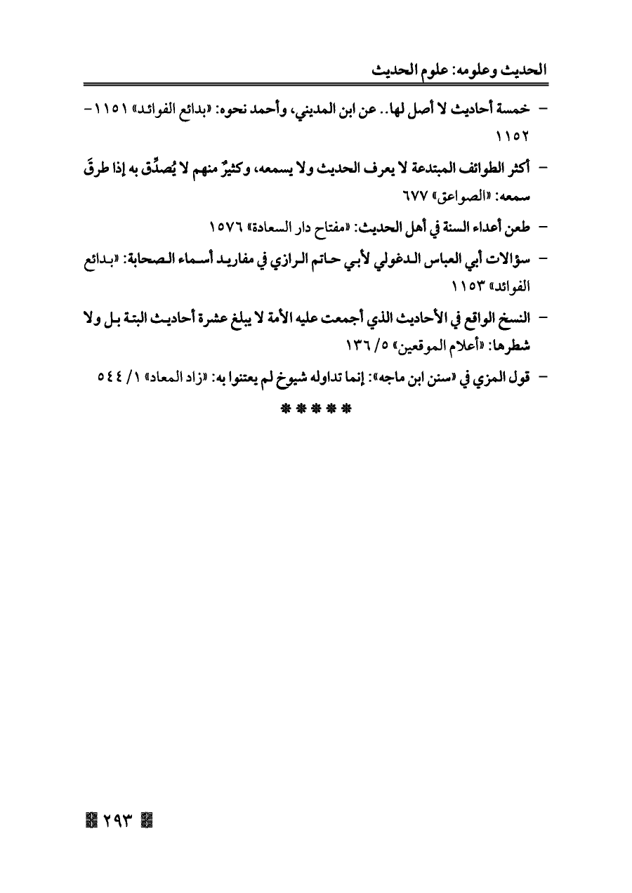 - النسخ الواقع في الأحاديث الذي أجمعت عليه الأمة لا يبلغ عشرة أحاديث البتة بل ولا شطرها: «أعلام الموقعين» ٥/ ١٣٦