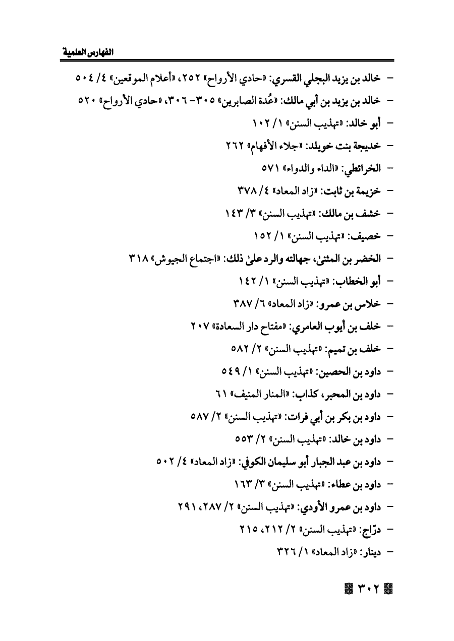 - خالد بن يزيد بن أبي مالك: «عُدة الصابرين» ٣٠٥ - ٣٠٦، «حادي الأرواح» ٥٢٠