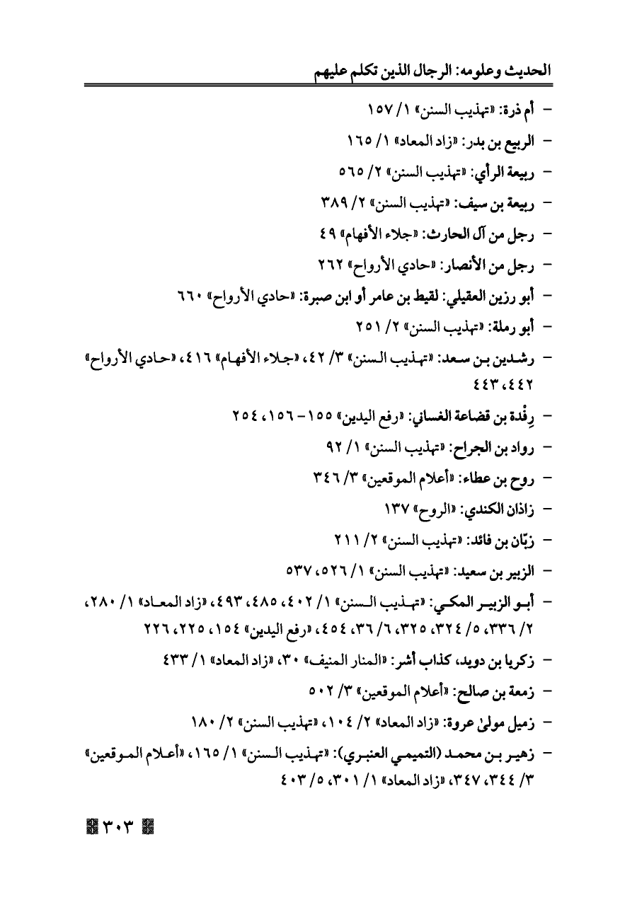 - الربيع بن بدر: «زاد المعاد» ١/ ١٦٥