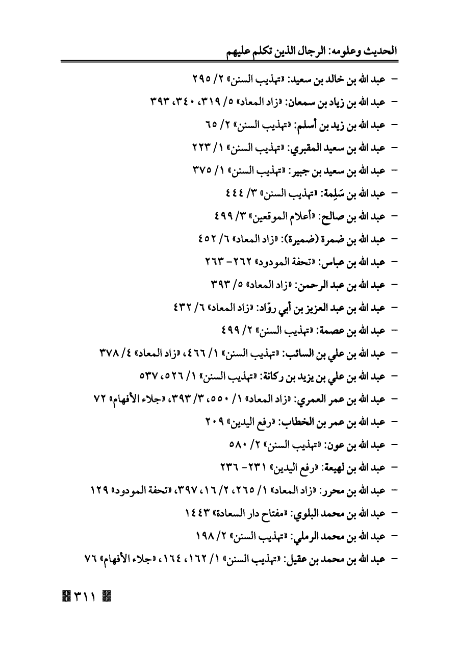 - عبد الله بن عبد الرحمن: «زاد المعاد» ٥/ ٣٩٣