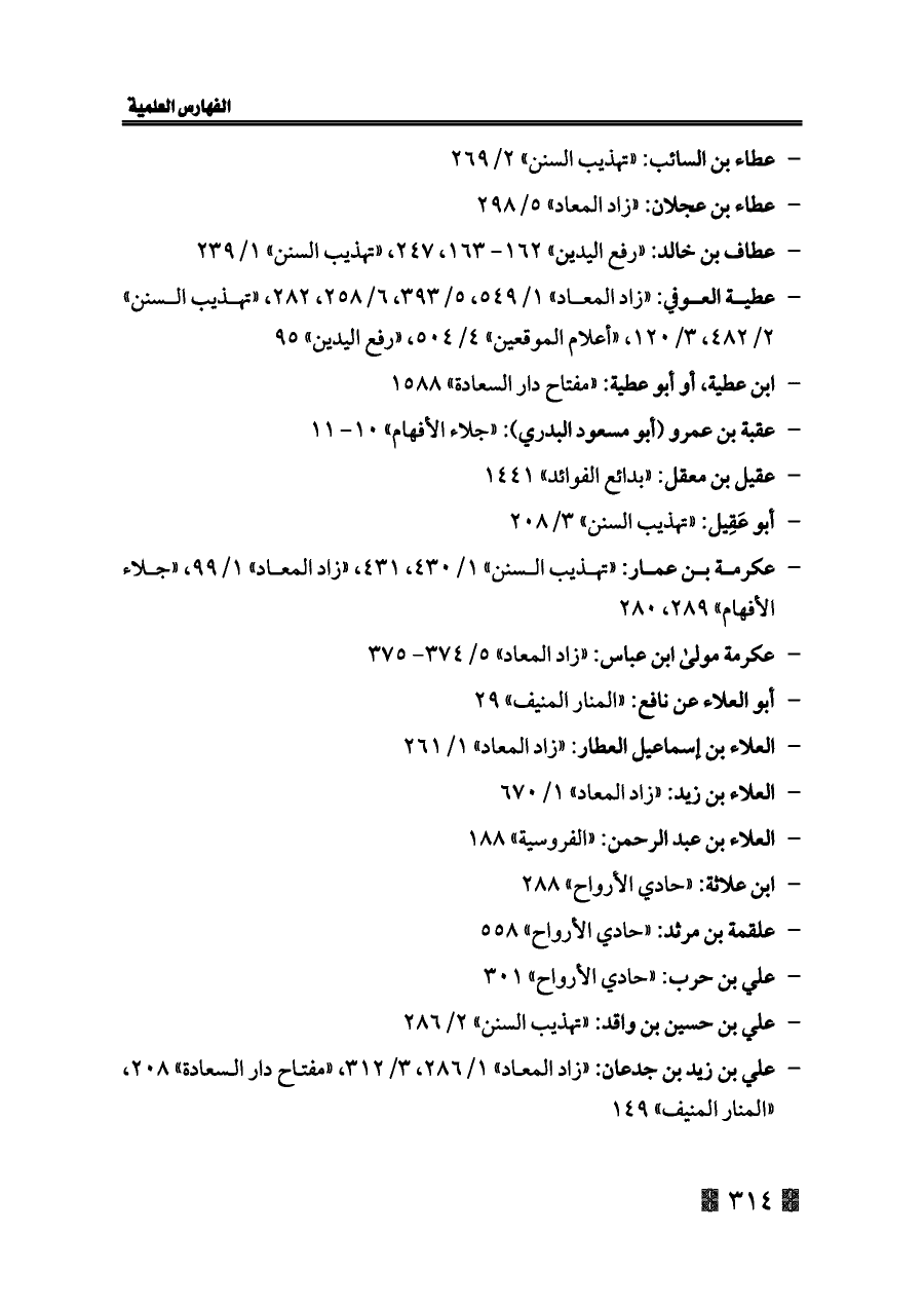 - عطية العوفي: «زاد المعاد» ١/ ٥٤٩، ٥/ ٣٩٣، ٦/ ٢٥٨، ٢٨٢، «تهذيب السنن» ٢/ ٤٨٢، ٣/ ١٢٠، «أعلام الموقعين» ٤/ ٥٠٤، «رفع اليدين» ٩٥