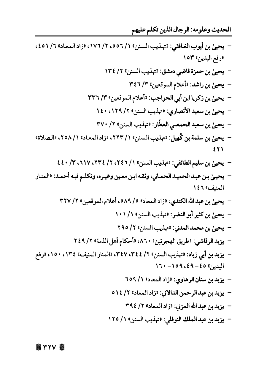 - يزيد بن أبي زياد: «تهذيب السنن» ٢/ ٣٤٤، ٣٤٧، «المنار المنيف» ١٣٤، ١٥٠، «رفع اليدين» ٤٥ - ٤٩، ١٥٩ - ١٦٠