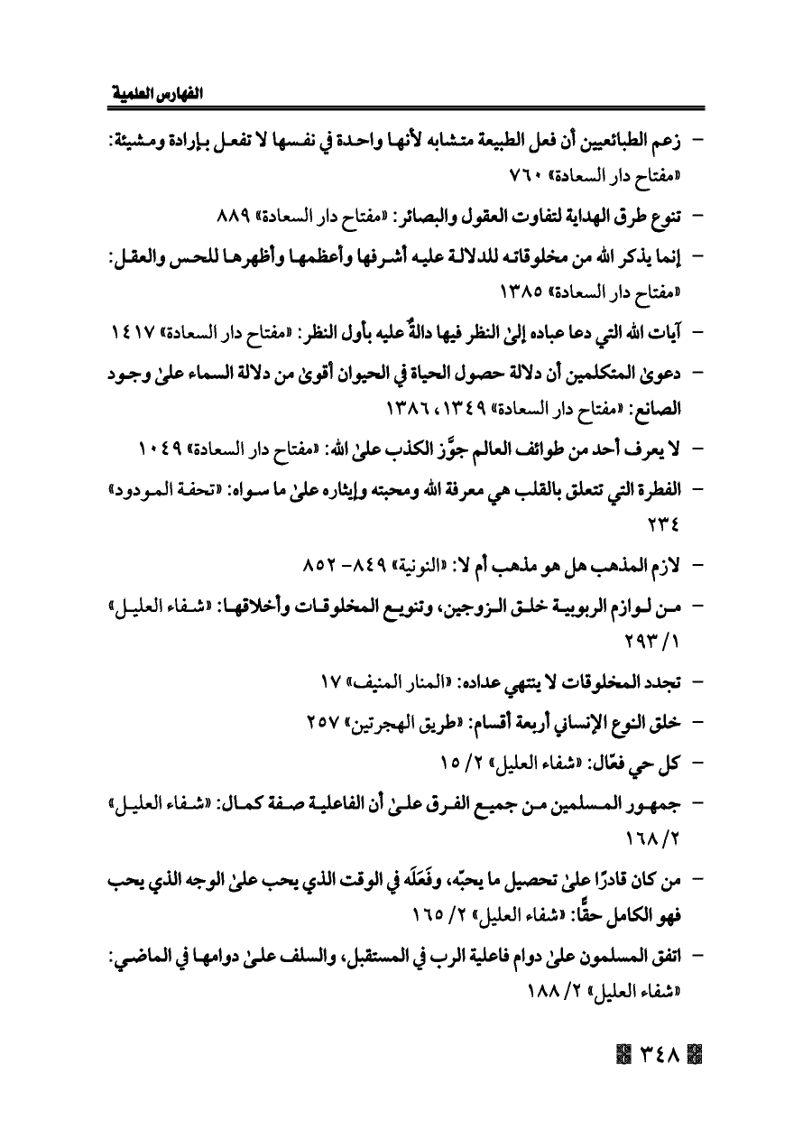 - دعوى المتكلمين أن دلالة حصول الحياة في الحيوان أقوى من دلالة السماء على وجود الصانع: «مفتاح دار السعادة» ١٣٤٩، ١٣٨٦