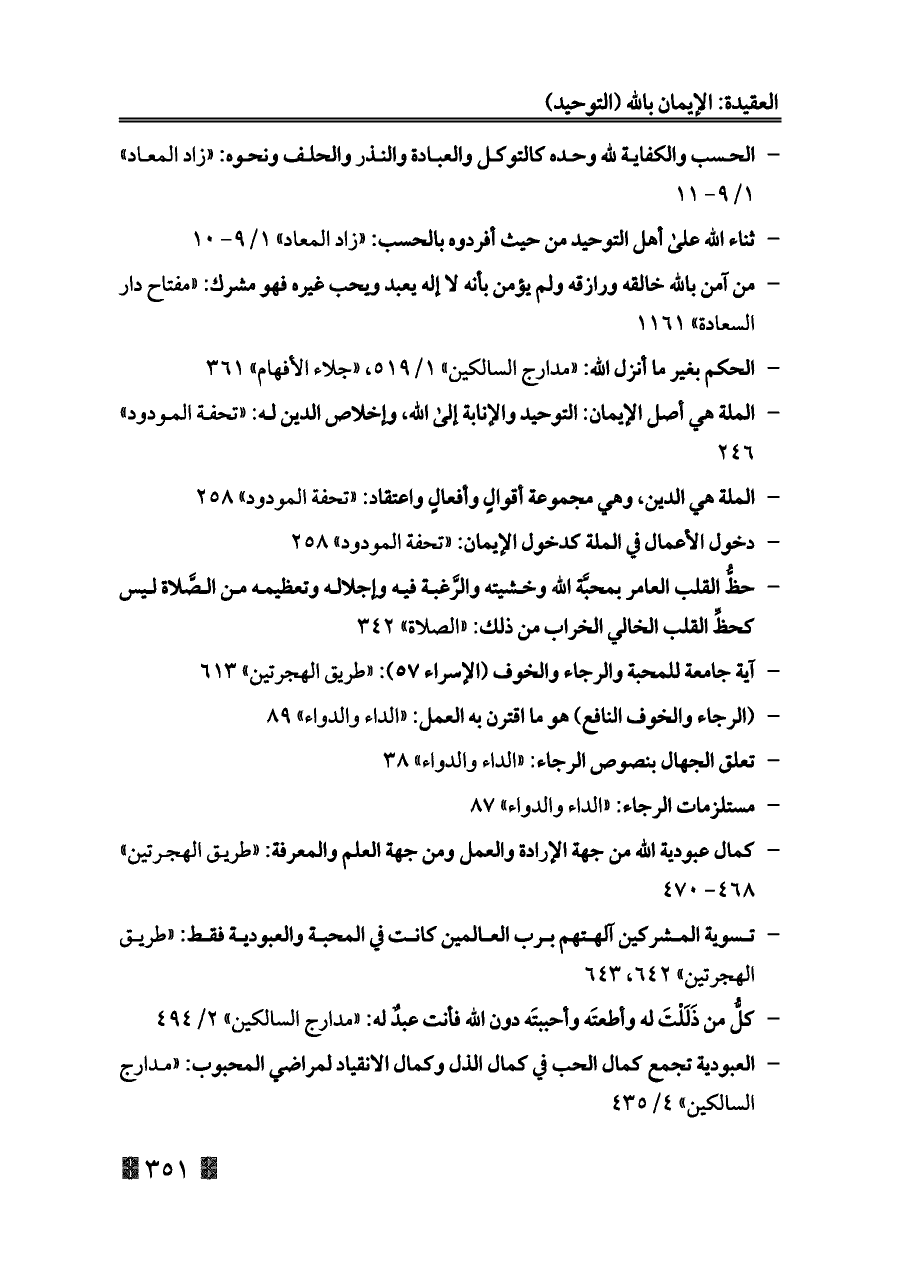 - كمال عبودية الله من جهة الإرادة والعمل ومن جهة العلم والمعرفة: «طريق الهجرتين» ٤٦٨ - ٤٧٠
