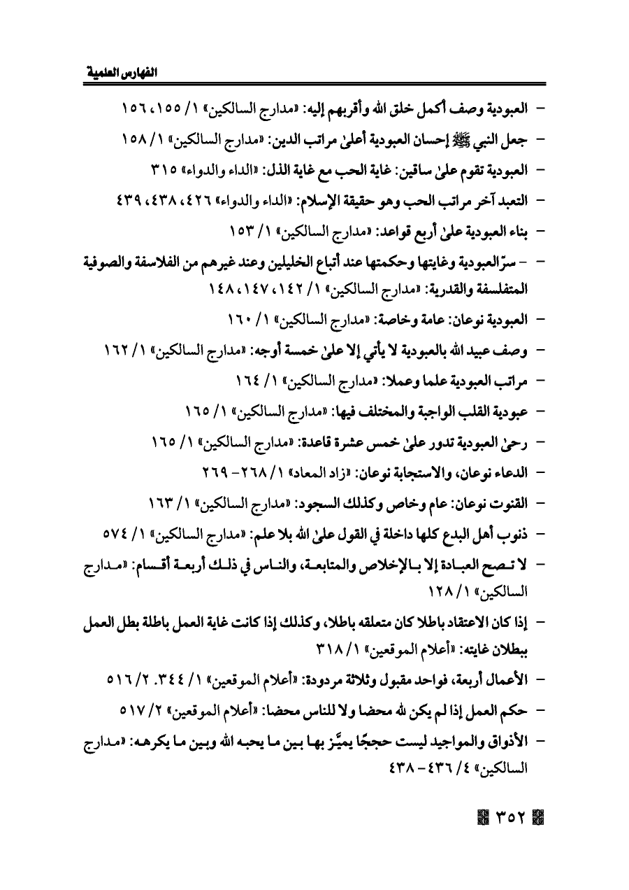 - مراتب العبودية علما وعملا: «مدارج السالكين» ١/ ١٦٤
