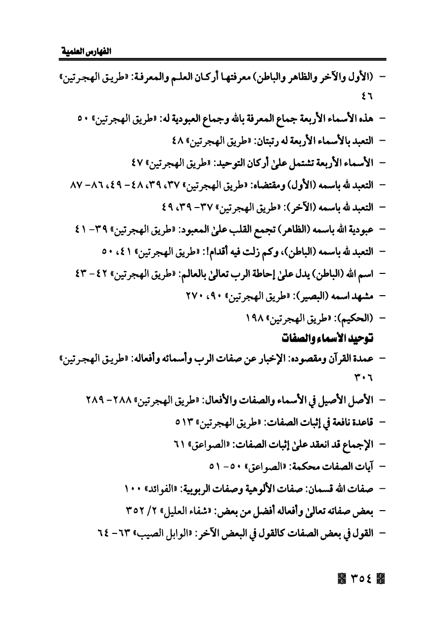 - التعبد لله باسمه (الأول) ومقتضاه: «طريق الهجرتين» ٣٧، ٣٩، ٤٨ - ٤٩، ٨٦ - ٨٧
