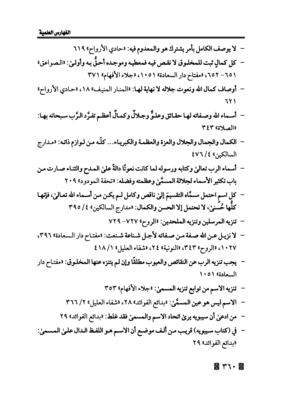 - لا يوصف الكامل بأمر يشترك هو والمعدوم فيه: «حادي الأرواح» ٦١٩