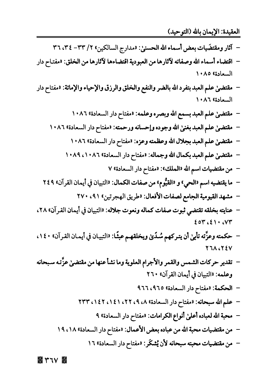 - مقتضى علم العبد بكمال الله وجماله: «مفتاح دار السعادة» ١٠٨٦، ١٠٨٩