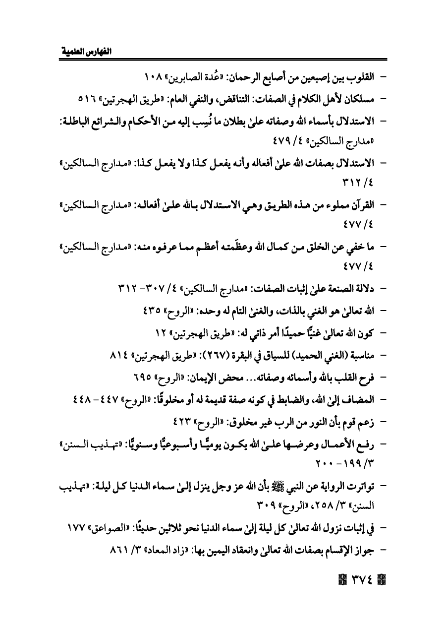 - دلالة الصنعة على إثبات الصفات: «مدارج السالكين» ٤/ ٣٠٧ - ٣١٢