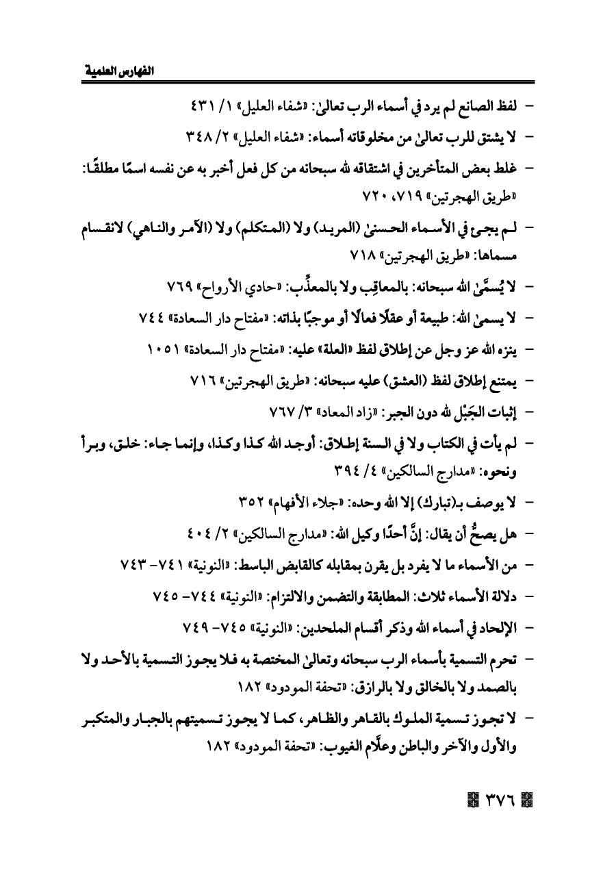 - لفظ الصانع لم يرد في أسماء الرب تعالى: «شفاء العليل» ١/ ٤٣١