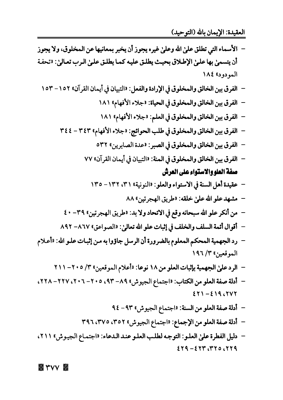 - أدلة صفة العلو من الكتاب: «اجتماع الجيوش» ٨٩ - ٩٣، ٢٠٥ - ٢٠٦، ٢٢٧ - ٢٢٨، ٢٧٢، ٤١٩ - ٤٢١