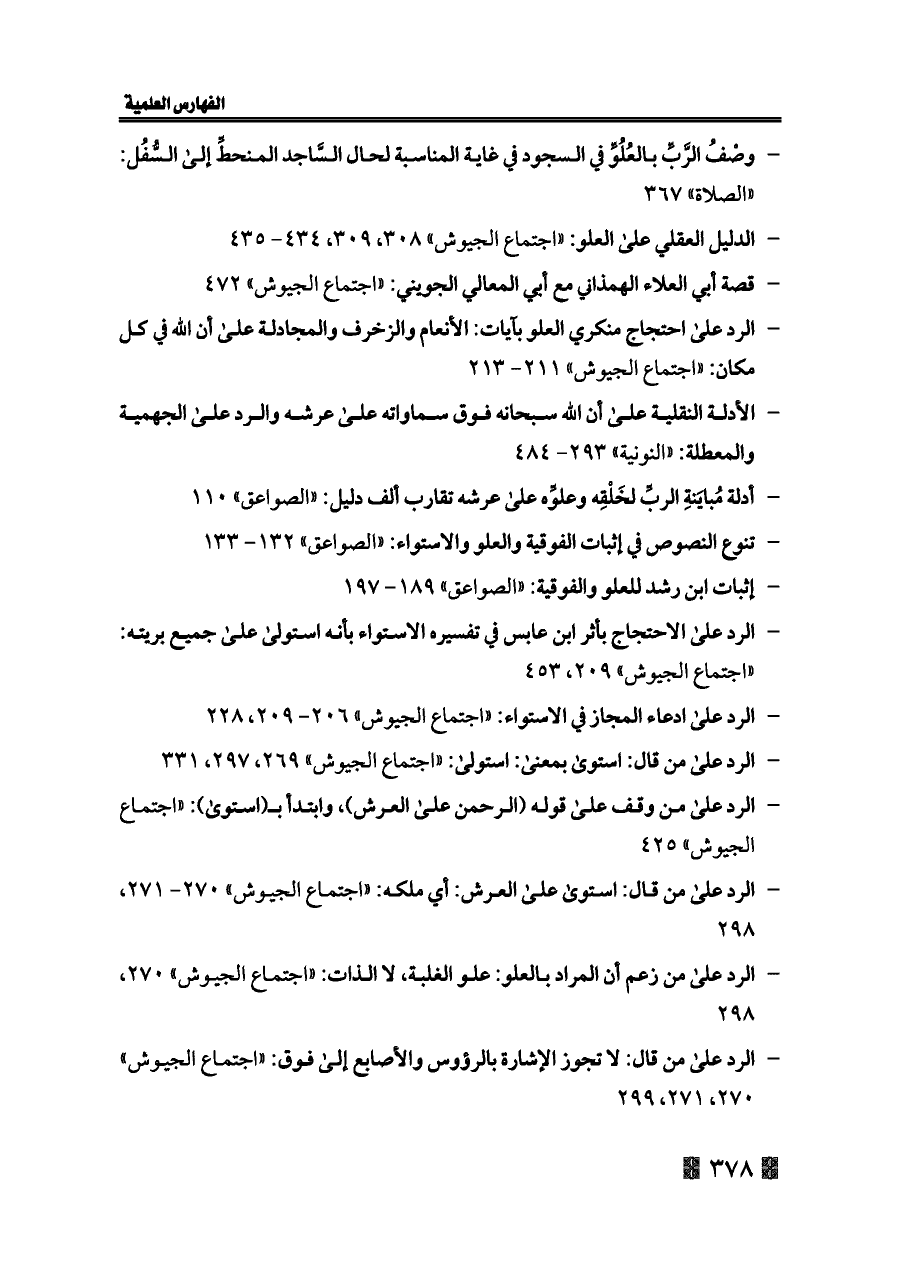 - الرد على من قال: لا تجوز الإشارة بالرؤوس والأصابع إلى فوق: «اجتماع الجيوش» ٢٧٠، ٢٧١، ٢٩٩