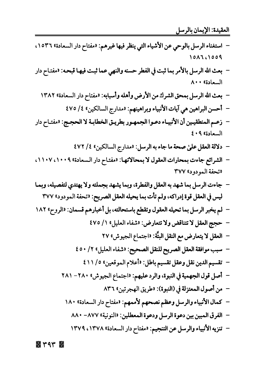 - دلالة العقل على صحة ما جاء به الرسل: «مدارج السالكين» ٤/ ٤٧٢