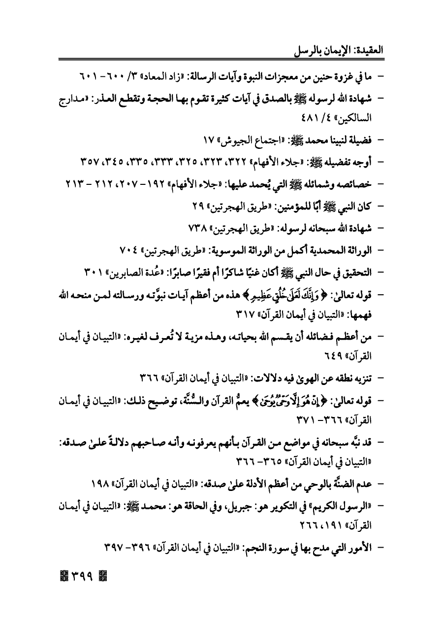 - أوجه تفضيله - صلى الله عليه وسلم -: «جلاء الأفهام» ٣٢٢، ٣٢٣، ٣٢٥، ٣٣٣، ٣٣٥، ٣٤٥، ٣٥٧