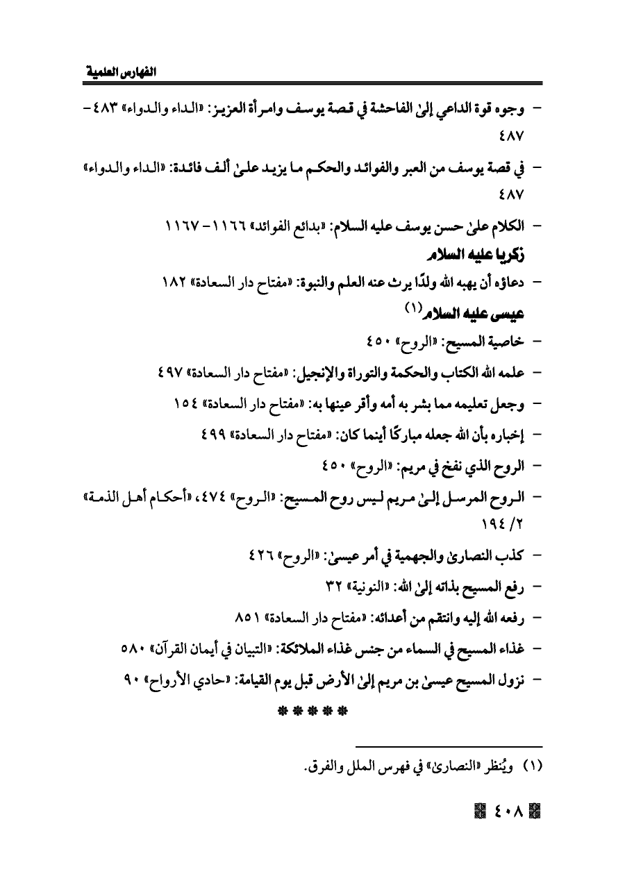 - علمه الله الكتاب والحكمة والتوراة والإنجيل: «مفتاح دار السعادة» ٤٩٧