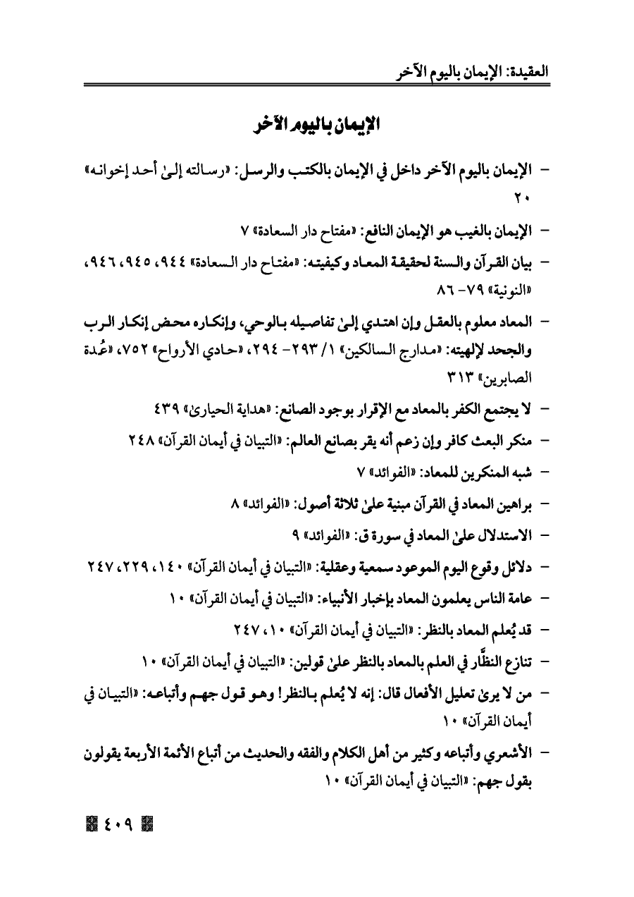 - تنازع النظَّار في العلم بالمعاد بالنظر على قولين: «التبيان في أيمان القرآن» ١٠