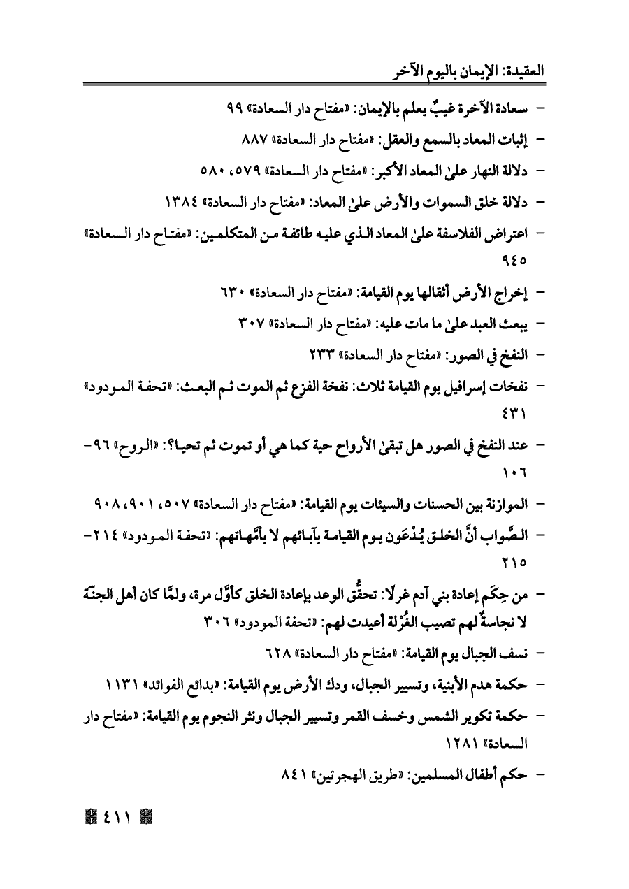 - دلالة النهار على المعاد الأكبر: «مفتاح دار السعادة» ٥٧٩، ٥٨٠
