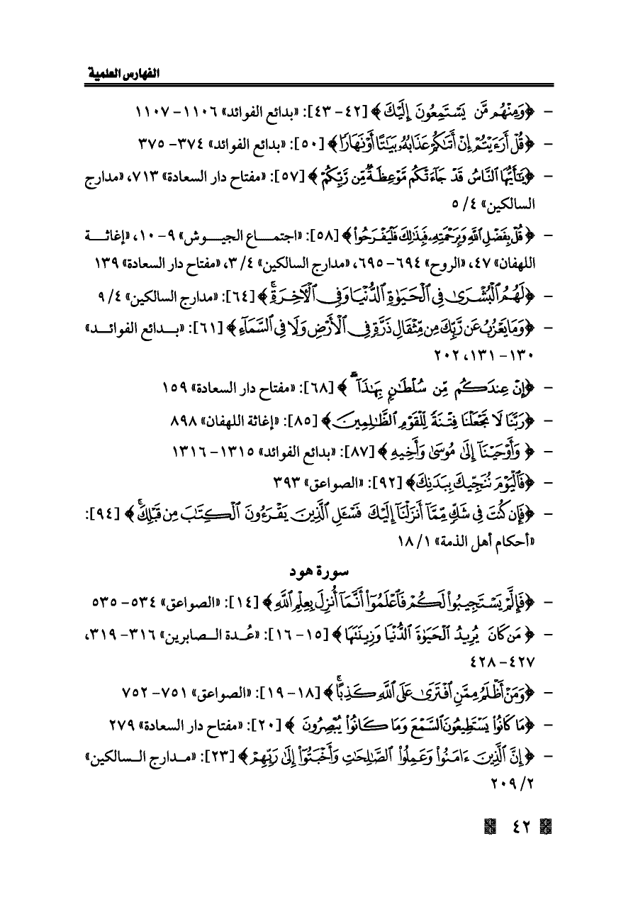 - {وَمِنْهُمْ مَنْ يَسْتَمِعُونَ إِلَيْكَ} [٤٢ - ٤٣]: «بدائع الفوائد» ١١٠٦ - ١١٠٧