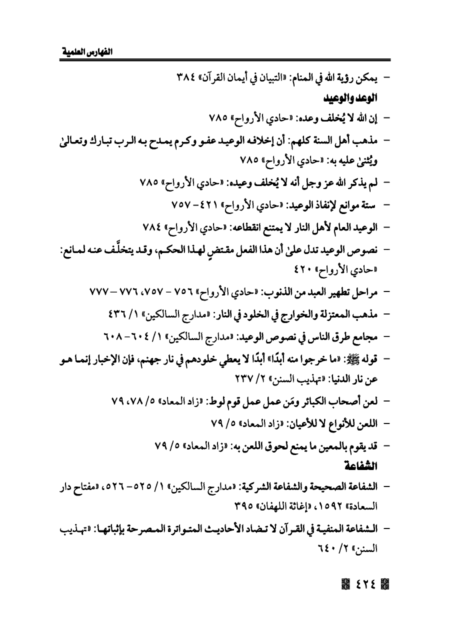 - الوعيد العام لأهل النار لا يمتنع انقطاعه: «حادي الأرواح» ٧٨٤