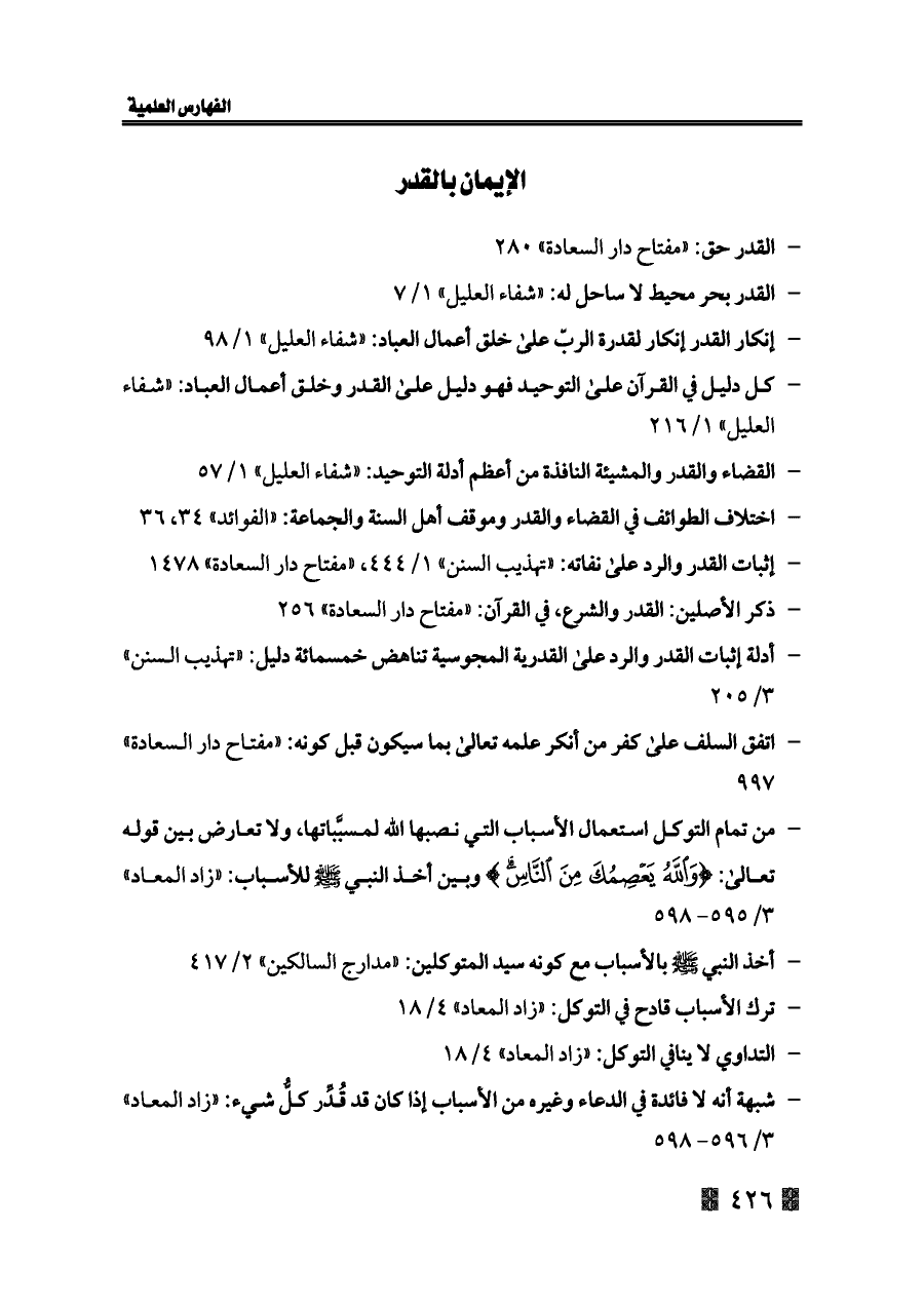 - اختلاف الطوائف في القضاء والقدر وموقف أهل السنة والجماعة: «الفوائد» ٣٤، ٣٦