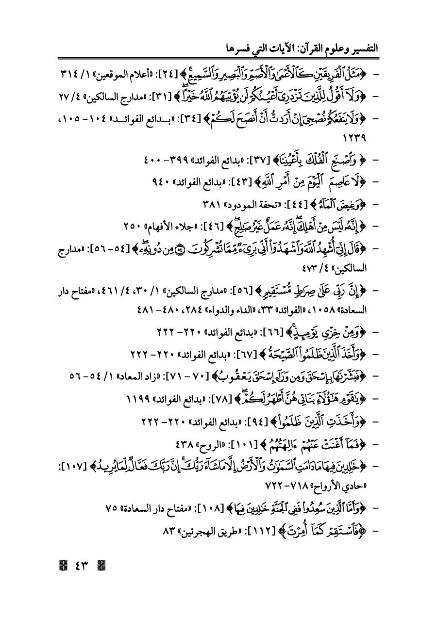 - {إِنَّ رَبِّي عَلَى صِرَاطٍ مُسْتَقِيمٍ} [٥٦]: «مدارج السالكين» ١/ ٣٠، ٤/ ٤٦١، «مفتاح دار السعادة» ١٠٥٨، «الفوائد» ٣٣، «الداء والدواء» ٢٨٤، ٤٨٠ - ٤٨١