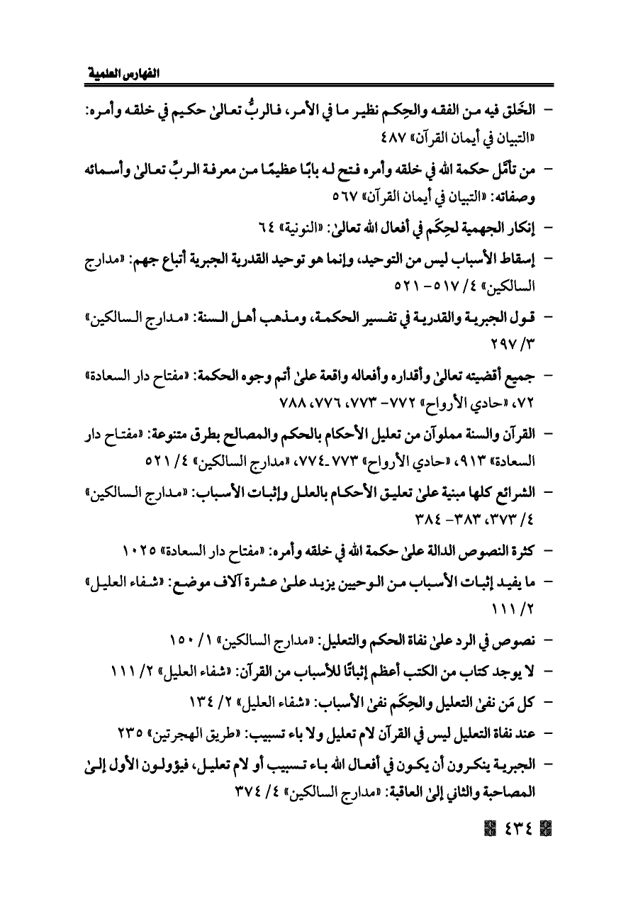 - نصوص في الرد على نفاة الحكم والتعليل: «مدارج السالكين» ١/ ١٥٠