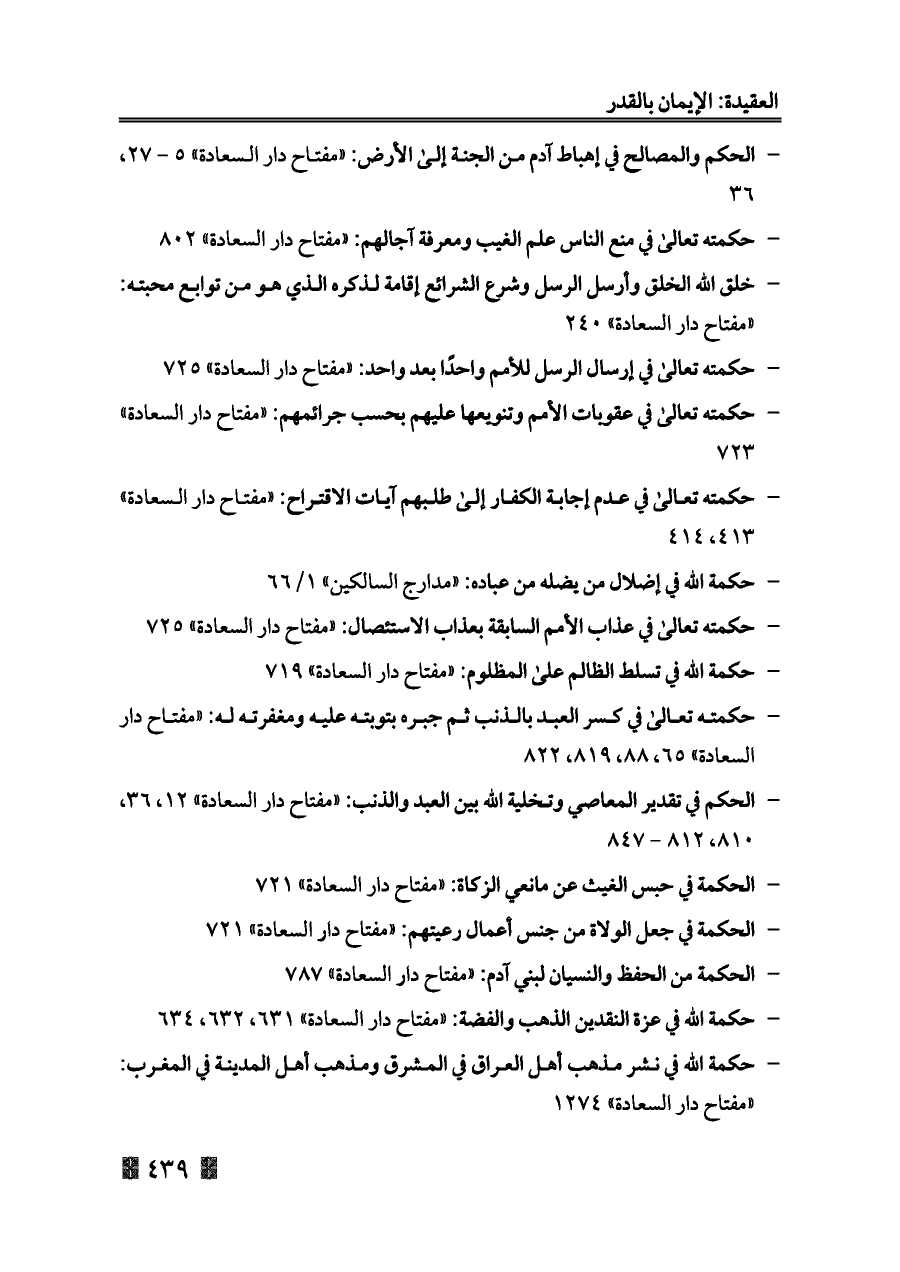 - حكمته تعالى في منع الناس علم الغيب ومعرفة آجالهم: «مفتاح دار السعادة» ٨٠٢