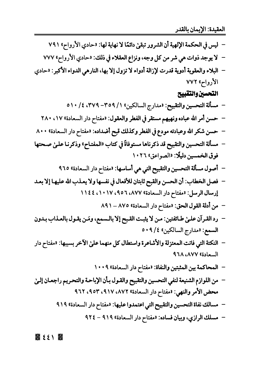 - مسالك نفاة التحسين والتقبيح التي اعتمدوا عليها: «مفتاح دار السعادة» ٩١٩