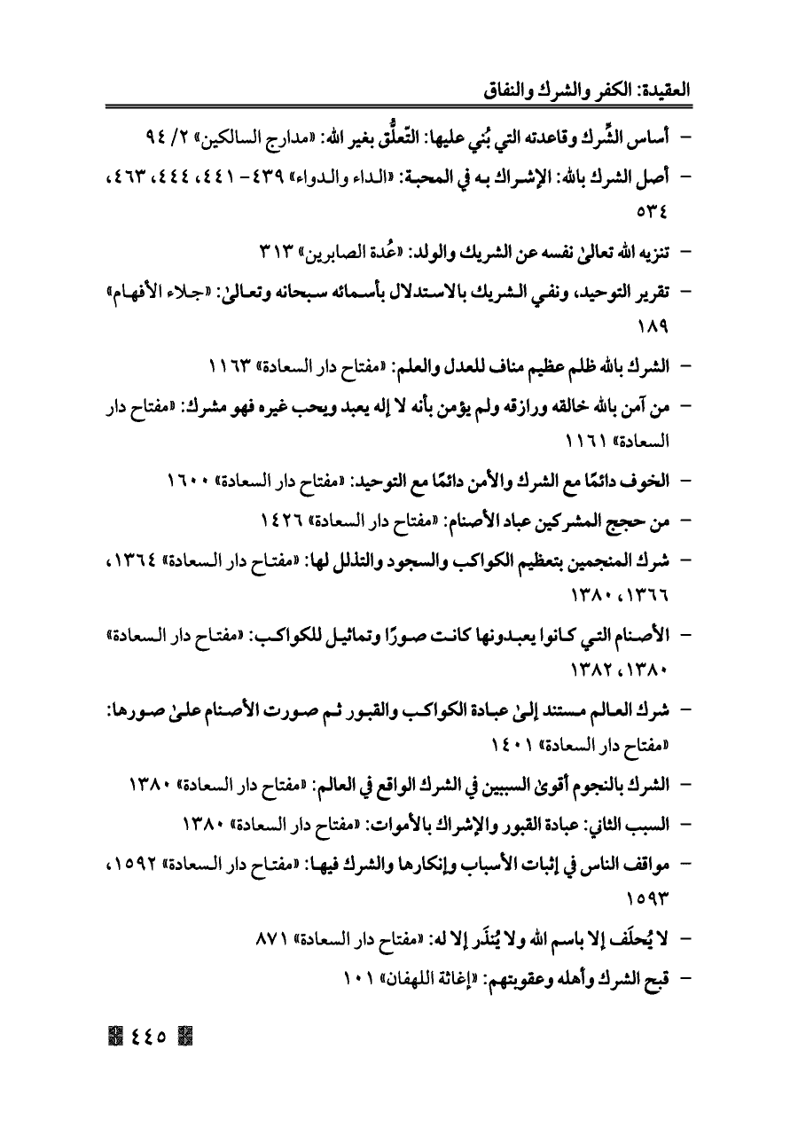 - الشرك بالله ظلم عظيم مناف للعدل والعلم: «مفتاح دار السعادة» ١١٦٣