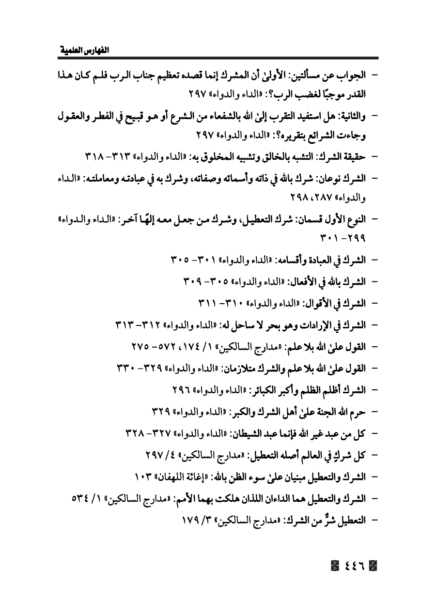 - الشرك بالله في الأفعال: «الداء والدواء» ٣٠٥ - ٣٠٩