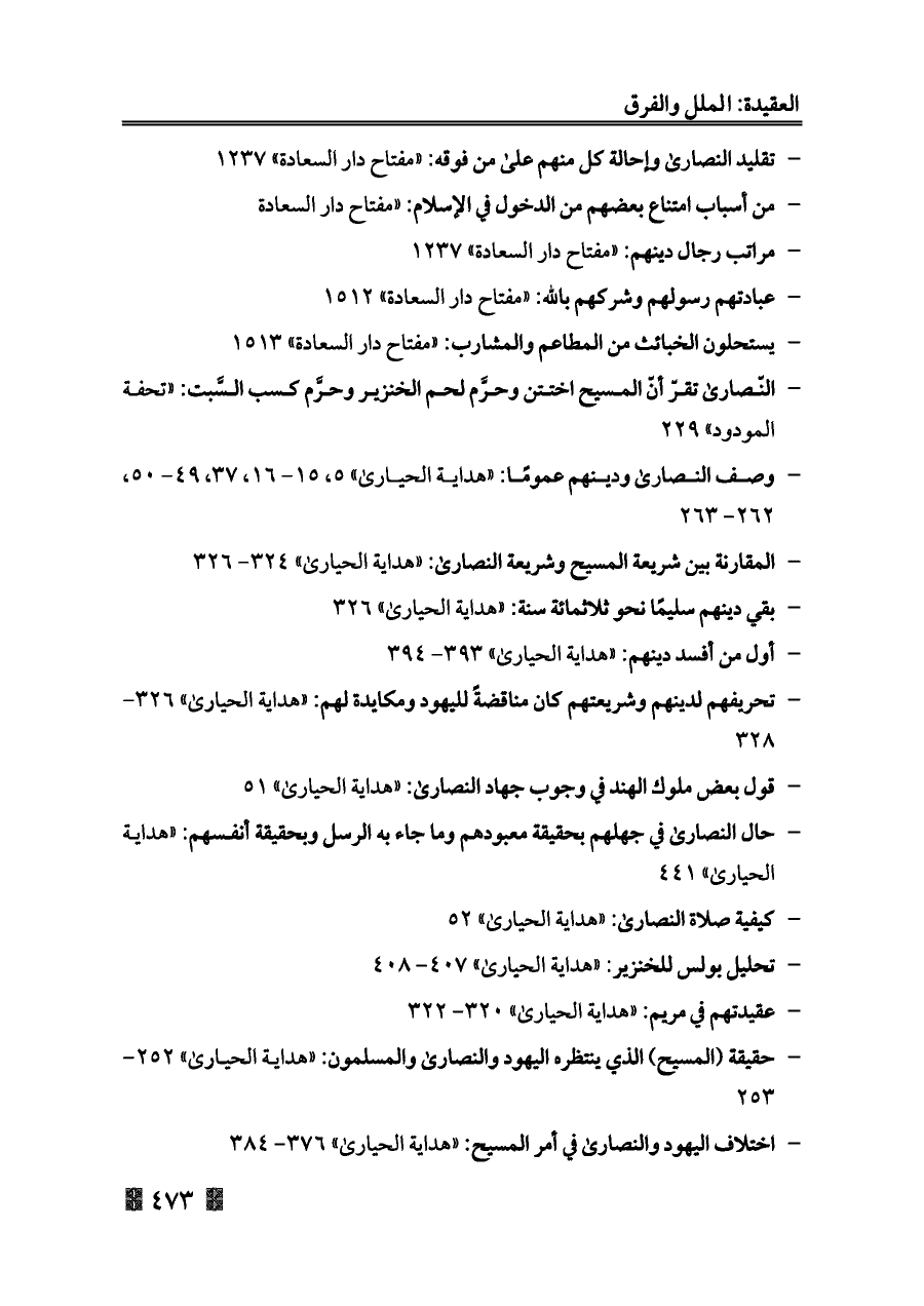 - المقارنة بين شريعة المسيح وشريعة النصارى: «هداية الحيارى» ٣٢٤ - ٣٢٦