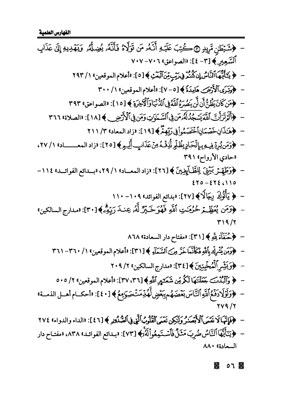 - {وَمَنْ يُرِدْ فِيهِ بِإِلْحَادٍ بِظُلْمٍ نُذِقْهُ مِنْ عَذَابٍ أَلِيمٍ} [٢٥]: «زاد المعاد» ١/ ٢٧، «حادي الأرواح» ٣٩١