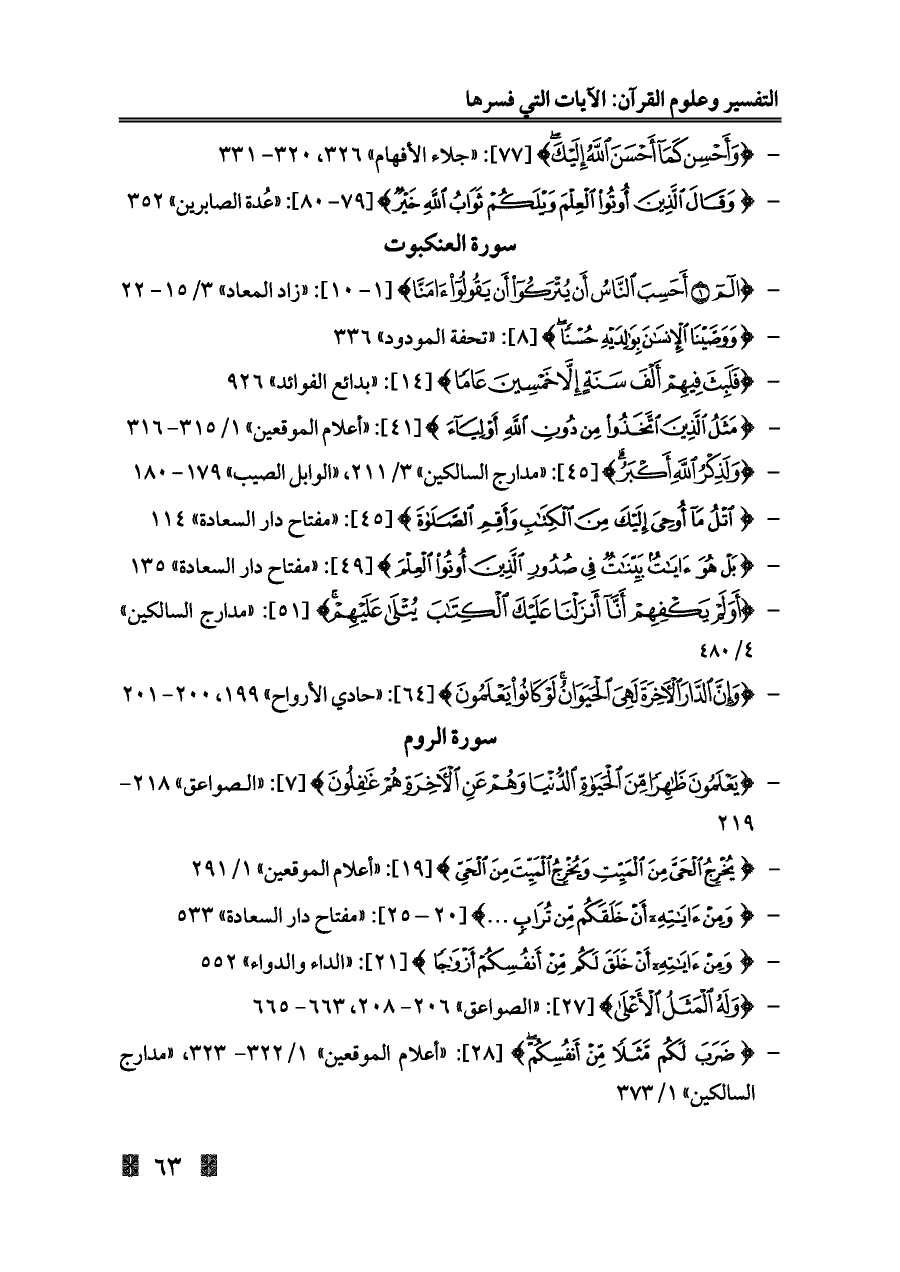 - {وَإِنَّ الدَّارَ الْآخِرَةَ لَهِيَ الْحَيَوَانُ لَوْ كَانُوا يَعْلَمُونَ} [٦٤]: «حادي الأرواح» ١٩٩، ٢٠٠ - ٢٠١