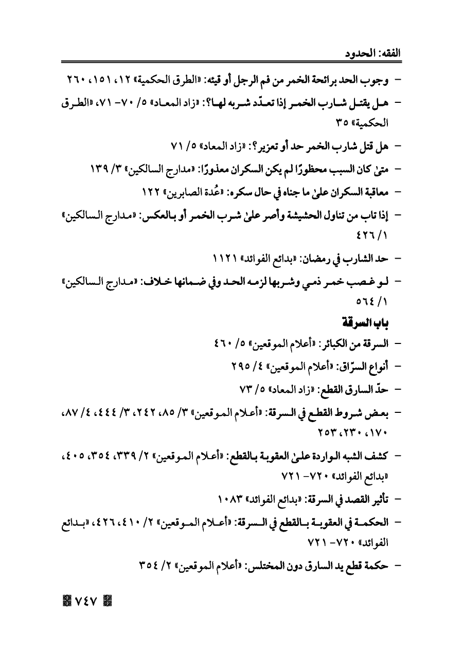 - بعض شروط القطع في السرقة: «أعلام الموقعين» ٣/ ٨٥، ٢٤٢، ٣/ ٤٤٤، ٤/ ٨٧، ١٧٠، ٢٣٠، ٢٥٣