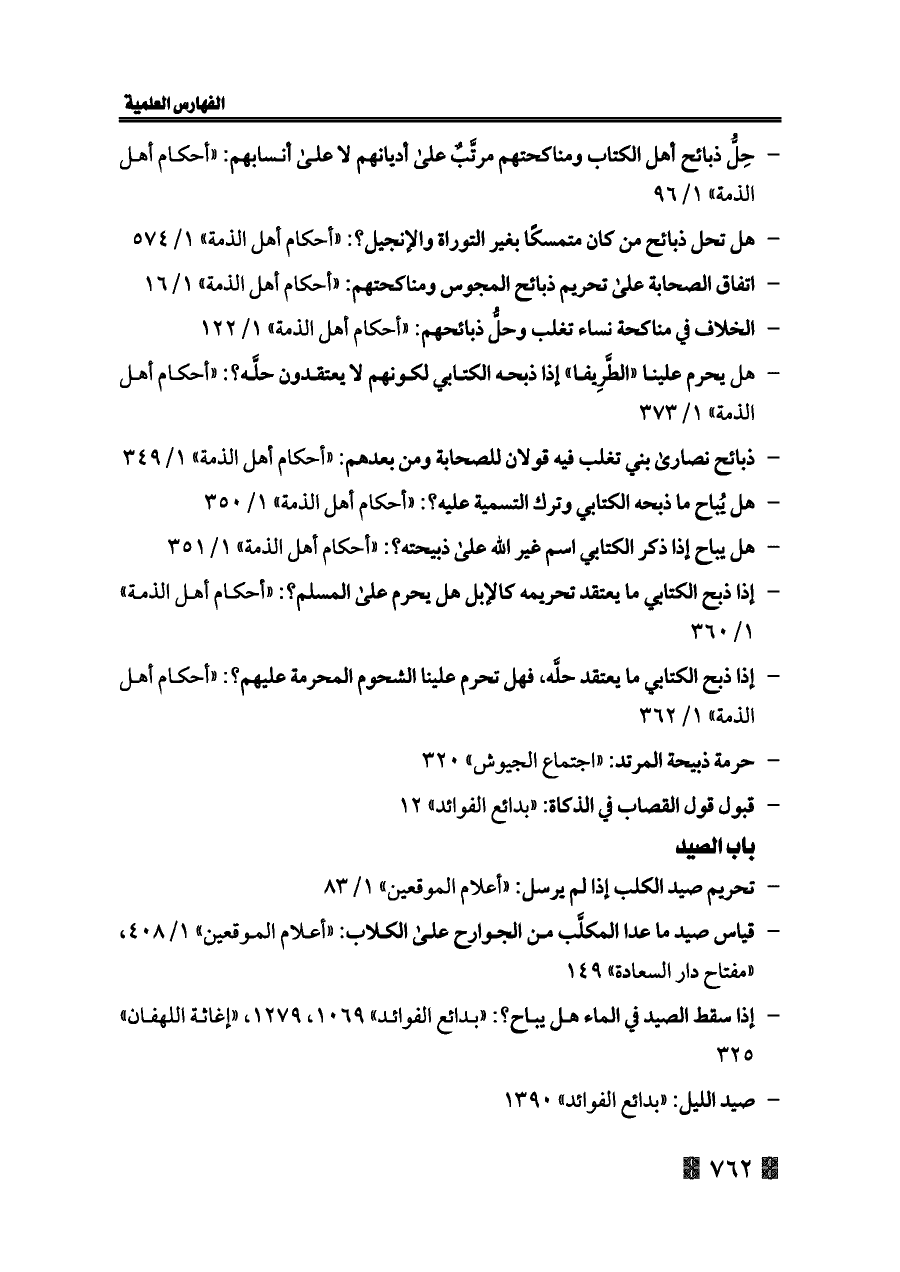 - حِلُّ ذبائح أهل الكتاب ومناكحتهم مرتَّبٌ على أديانهم لا على أنسابهم: «أحكام أهل الذمة» ١/ ٩٦