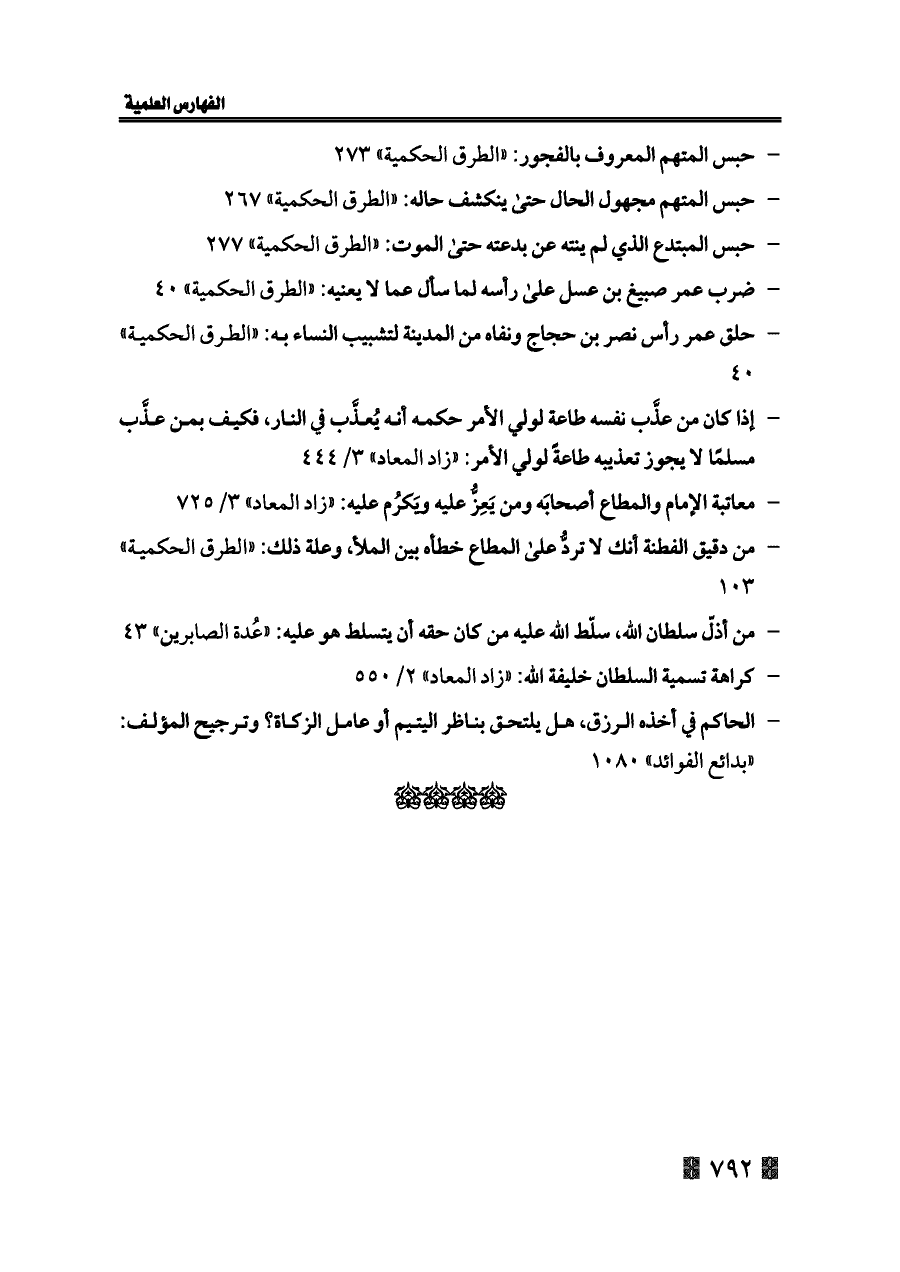 - كراهة تسمية السلطان خليفة الله: «زاد المعاد» ٢/ ٥٥٠